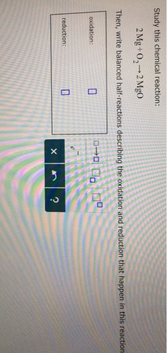 Correct answer to the question What is the reduction half-reaction for 2Mg O2 2Mgo. Reduction Half Rxn 12O₂ 2e 2O. O2g 4e 2O.